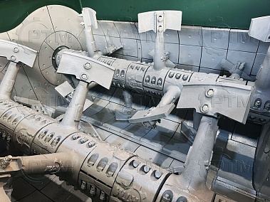 2. Валы и лопасти: вращающиеся валы движутся в противоположных направлениях, создавая силы смешивания. На валах установлены стойки с лопастями, которые перемещают материалы в разные направления и обеспечивают равномерное смешивание. Стойки и лопасти выполнены из высокопрочного износостойкого чугуна, срок эксплуатации два года.