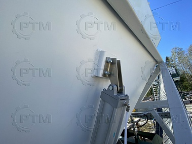Баки устанавливаются на раме, каждый бак имеет две дозирующие заслонки, на заслонку установлен пневмоцилиндр, он отвечает за открытие и закрытие заслонки. Так же бункеры оборудованы вибродвигателями Oli MVE/300 (Италия), они необходимы для встряхивания инертного материала.