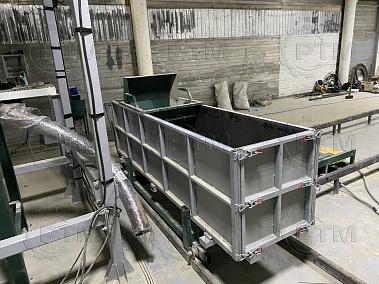 Борт форм образует форму для газобетонного массива с габарита 2400*600*650 (д*ш*в) мм, стандартно это 24 блока шириной 200 мм. Форма выполнена из профильной трубы с листовым металлом, толщиной 3 мм. Для простоты сборки формы на ней установлены эксцентриковые замки (12 шт). Имеется паз для центровки бортов на поддоне форм (основание формы), а так же данные борта форм оснащены резиновым уплотнителем для герметизации собранной формы. После установки бортов на поддон форм, форма полностью готова к заливке газобетонной смеси. Данные борта устанавливаются на линии по производству газобетона с пильными ЧПУ комплексами.