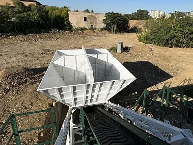 1. Дозирующий комплекс ДРКМ-40 (4 секции по 10 м3): состоит из двух до четырех бункеров для хранения инертных материалов (щебень, песок, отсев). На каждом бункере имеется два пневмо- затвора, необходимых для точной дозации материалов. При дозировании материалы попадают на весовой ленточный конвейер, весовые датчики фирмы CAS Ю. Корея, при наборе нужного количества материалов, заслонки закрываются, подача прекращается. Каждый бункер оснащен вибродвигателем MVE 300/3.