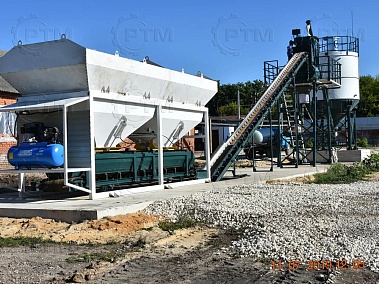 Данный завод производительность от 28 до 36 м3/час товарного бетона марки м200 или раствора. Объём загрузки бетоносмесителя 750 литров, объем выгрузки готового бетона 500 литров. Один цикл не более 55 секунд. Время работы цикла регулируется оператором бетонного завода.