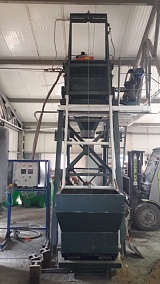 Данный завод состоит из жесткой рамной конструкции, одновального бетоносмесителя на 500 литров по загрузке, скипового бака с весовой площадкой и лебедки для подъема инертных материалов.