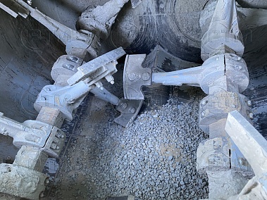 6. Выгрузка смеси: После завершения смешивания бетонная смесь выгружается из бетоносмесителя, лопатки расположены таким образом, чтобы при вращении они выгружали бетонную смесь из бетоносмесителя. Далее смесь поступает в миксер или на технологическую линию изготовления бетонных изделий.