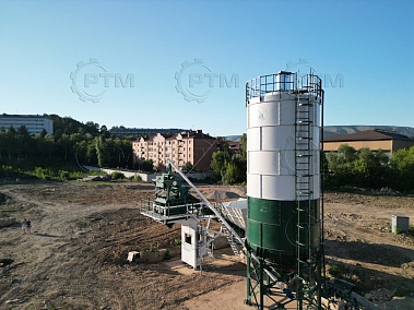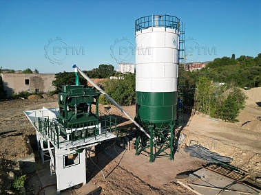 Силос цемента предназначен для хранения цемента на площадке. Силос принимает цемент по трубе закачки от цементовоза, сохраняет его от внешних воздействий. Далее цемент подается при помощи шнекового конвейера на блок дозаторов. На блоке дозаторов взвешивается и попадает в производственный цикл бетона на бетонном заводе.