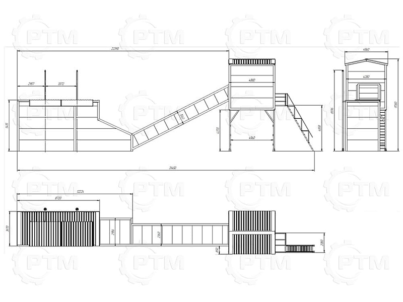 2.      После набора нужного количества материалов инертные попадают на наклонный ленточный конвейер с шевронной лентой. Ширина ленты 600 мм, длинна конвейера 16 метров.